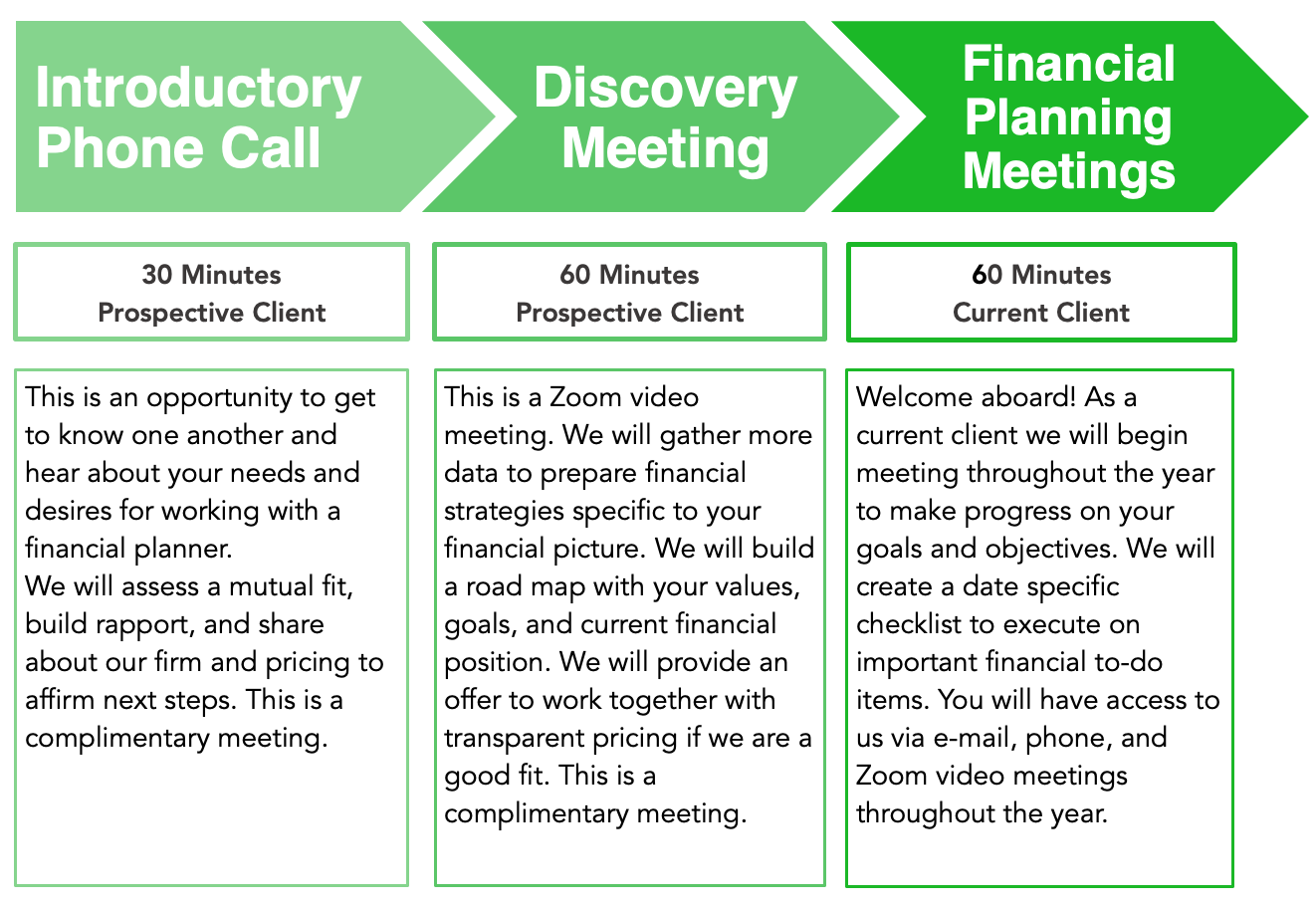 Our services can be paid for via a combination of a percentage of investments we manage for you and an annual flat fee for comprehensive financial planning and advice. Fees depend on your unique financial picture, which we will uncover together. The yearly financial planning engagement starts at $7,200 annually for individuals, and $10,800 annually for business owners. Fees also depend on investments managed, ranging from 0.90%-1.5% of the investment account balance per year. Your specific situation would dictate the fee, which would be stated clearly to you before working together formally. Contact Us for more information.